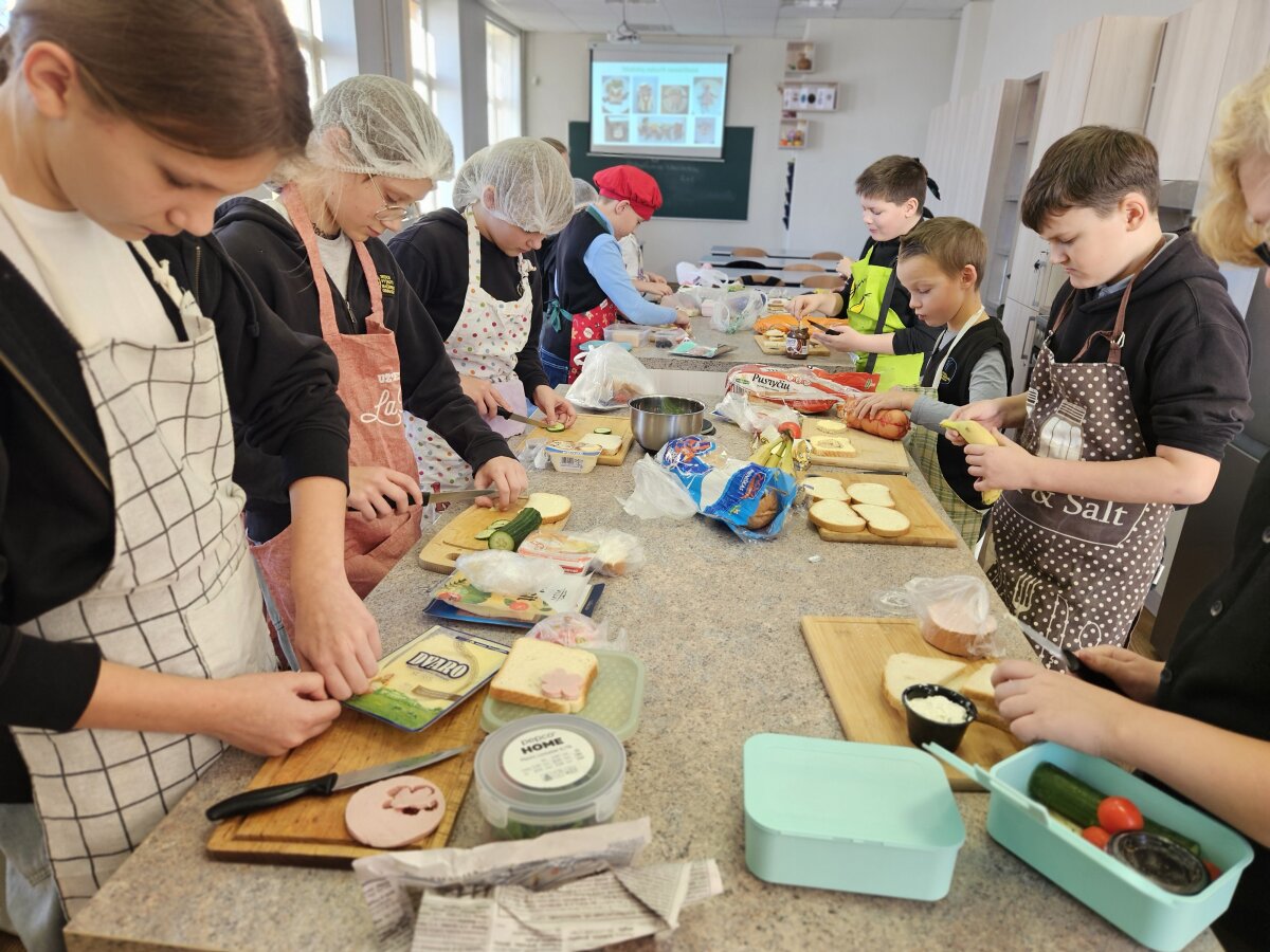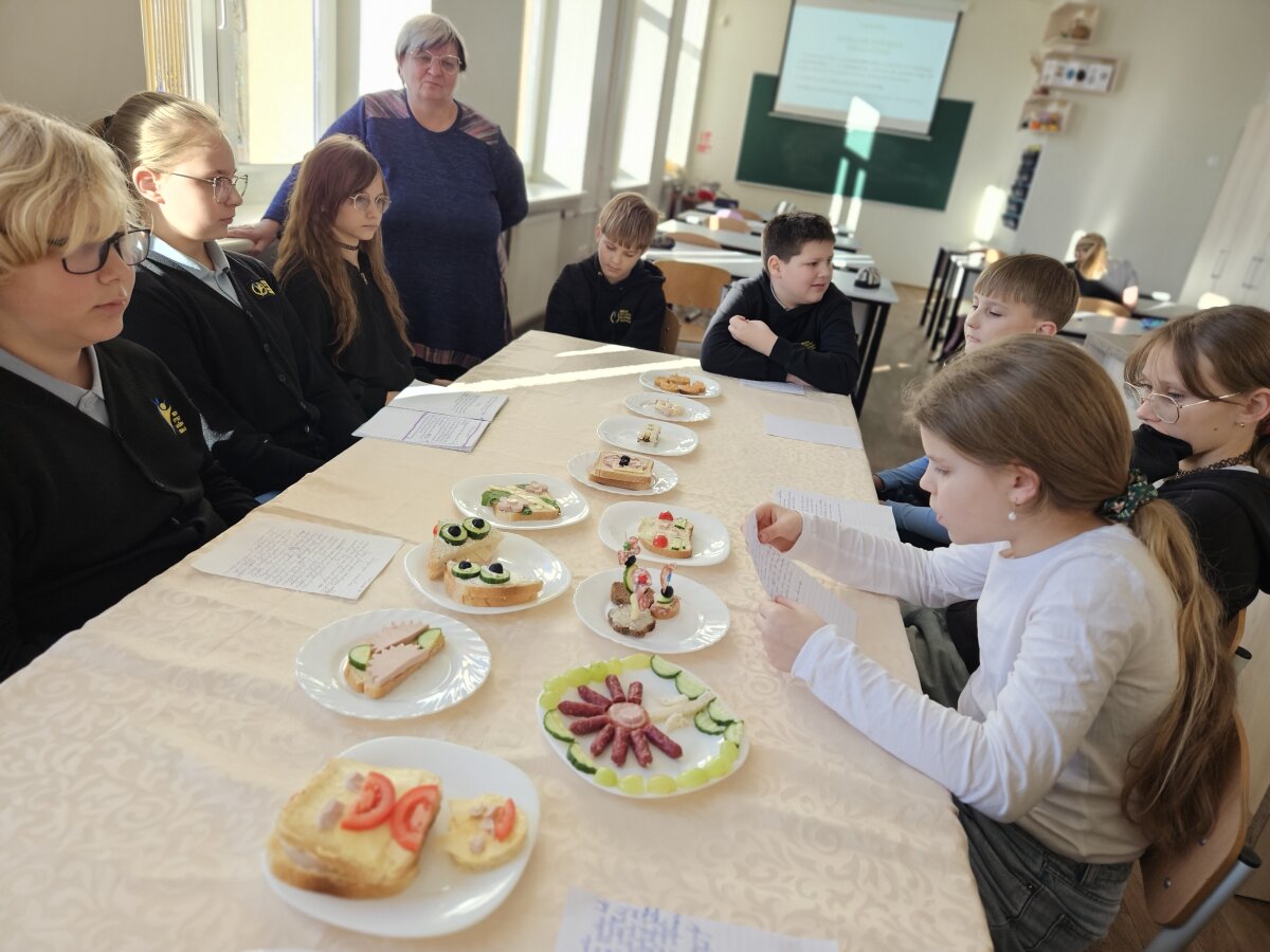 Lapkričio 24 d. 5kl. mokiniai dalyvavo ypatingoje integruotoje technologijų ir lietuvių k. pamokoje, kurioje virtuvė susitiko su kūryba. Mokiniai gamino nepaprastus, originalius sumuštinius, o vėliau kūrė jų gaminimo istorijas- nuo linksmų nuotykių iki tikrų kulinarinių legendų.