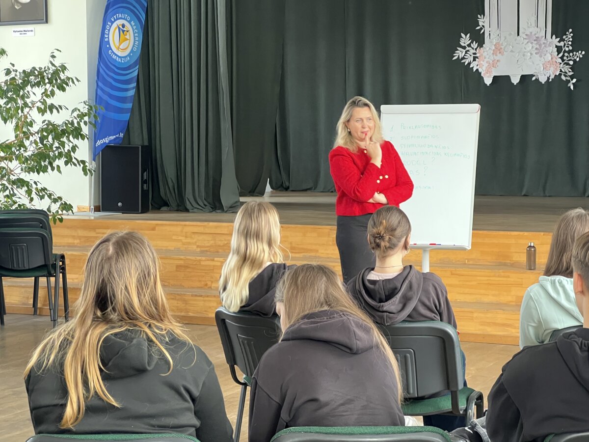 Mokiniai sužinojo kokią žalą organizmui daro psichoaktyvios medžiagos, kodėl svarbu mokėti pasakyti „ne“, bei kokia teisinė atsakomybė taikoma jas vartojantiems ir platinantiems.