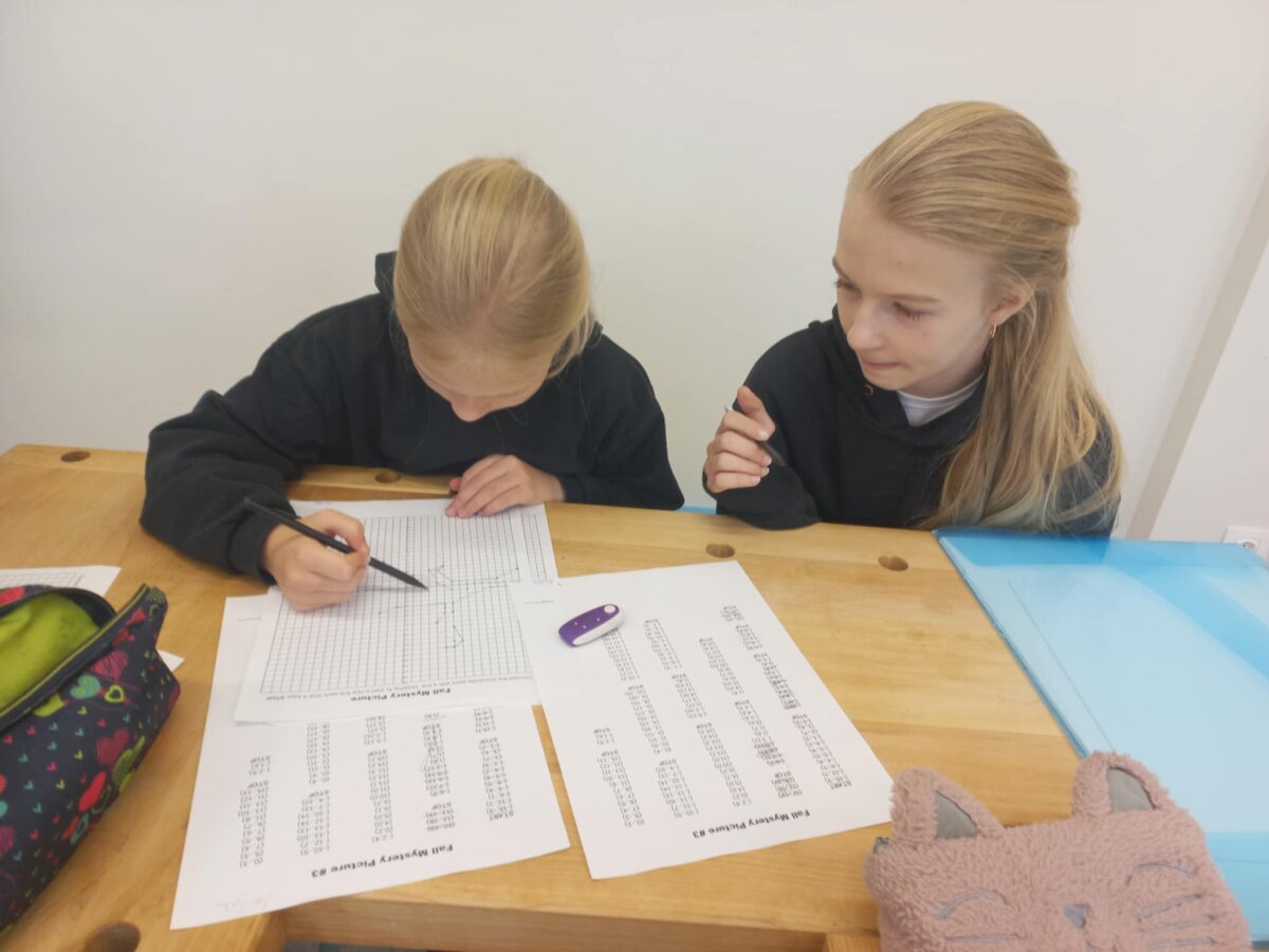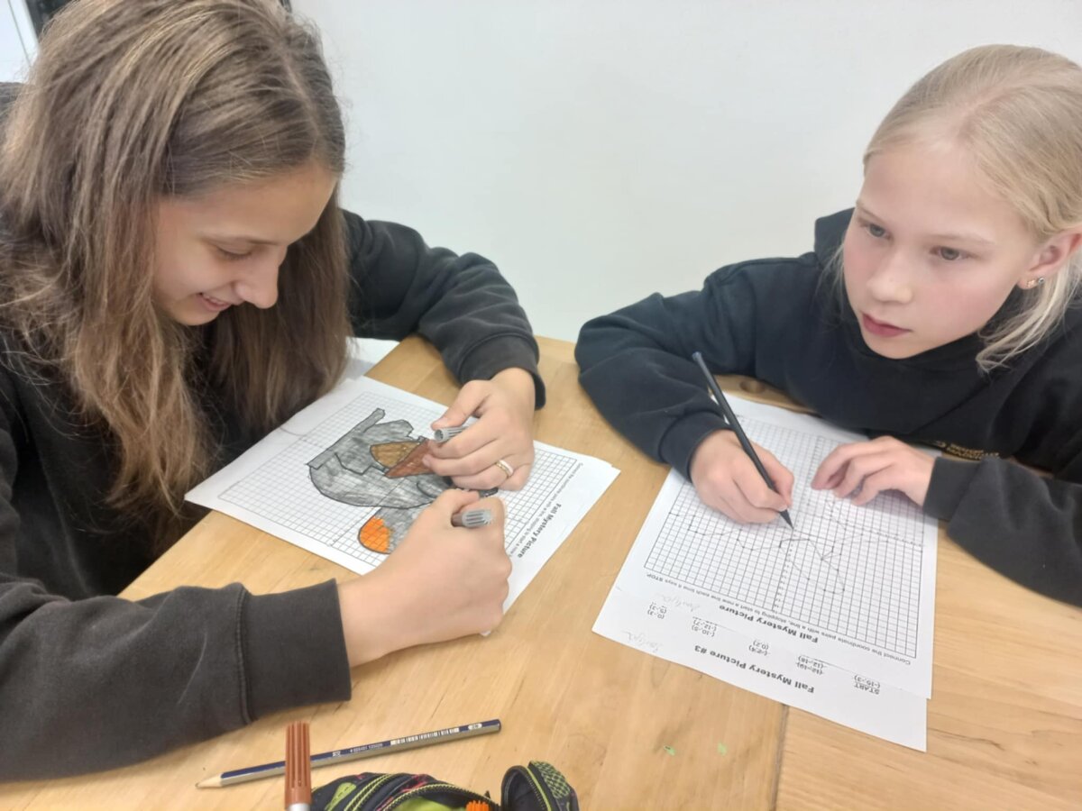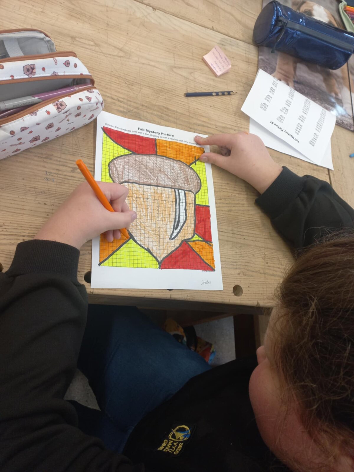 Spalio 1 d. 6-okai dalyvavo integruotoje dailės ir matematikos pamokoje „Paslėptas piešinys koordinačių plokštumoje“.