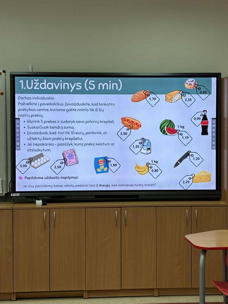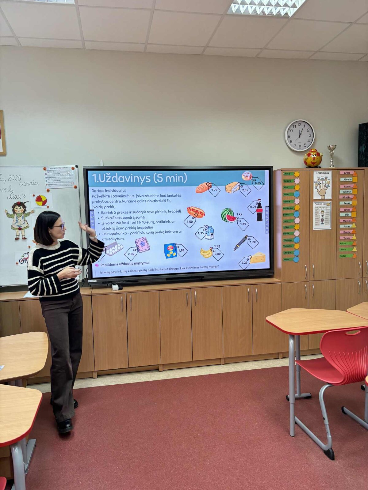 Šiandien klasėje virė tikras miesto gyvenimas! Mokiniai įsitraukė į kūrybingą, dinamišką pamoką, kurioje derino anglų kalbos žodyną su matematiniais gebėjimais. Dirbdami grupėse, porose ir individualiai, jie sprendė realaus gyvenimo situacijas – rinko pirkinių krepšelį, skaičiavo sąskaitas, pirko bilietus į kino teatrą, o kavinėje kalbėjosi anglų kalba „padavėjo ir kliento“ vaidmenimis.Pamokoje netrūko diskusijų, sprendimų priėmimo ir smagių iššūkių – mokiniai ne tik gilino racionaliųjų skaičių supratimą, bet ir lavino kalbinius įgūdžius.Džiaugiamės integruotu ugdymu, kuris leidžia žinias taikyti praktiškai, o mokymąsi paverčia prasmingu ir įtraukiančiu!