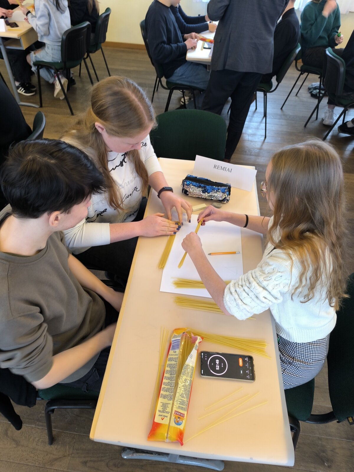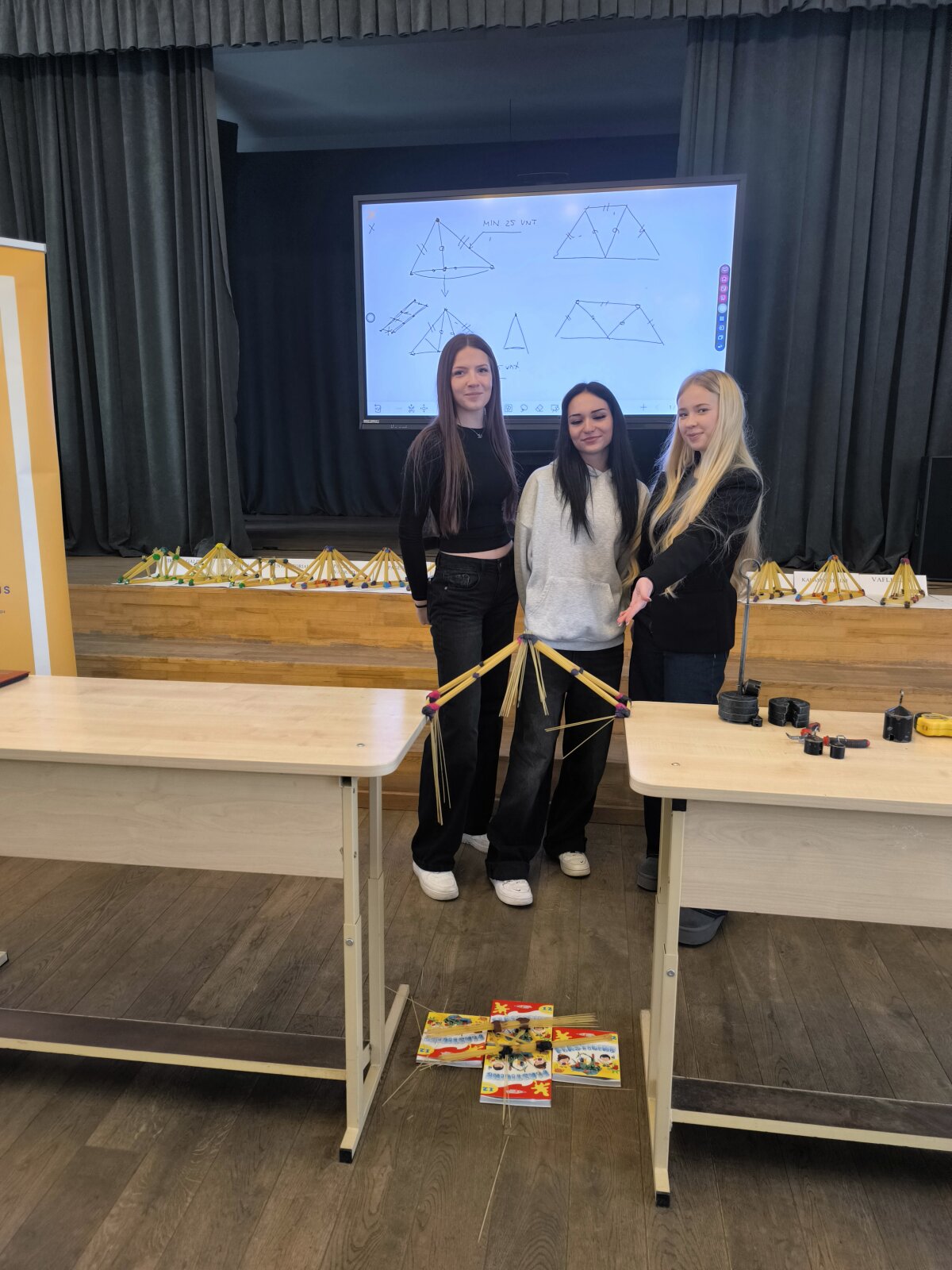 Didžiausio susidomėjimo sulaukė momentas, kai vienas po kito buvo testuojami iš makaronų sukurti tiltai – kiekvienas su savitu dizainu, konstrukcija ir strategija.